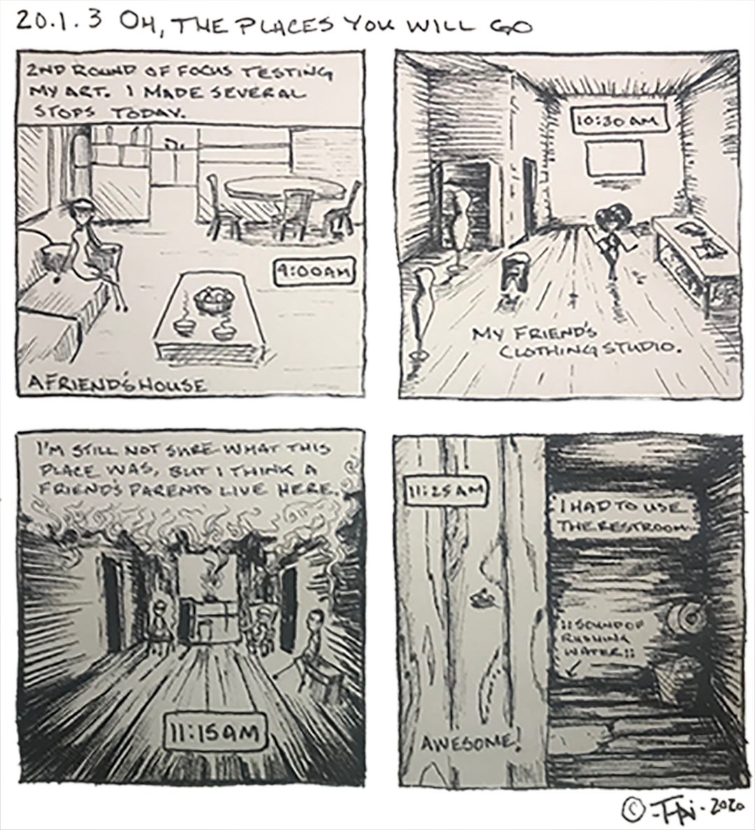 Starting at the beginning of 2020, I decided to capture some moment, event, or circumstance from each day in a four panel comic for 30 days.